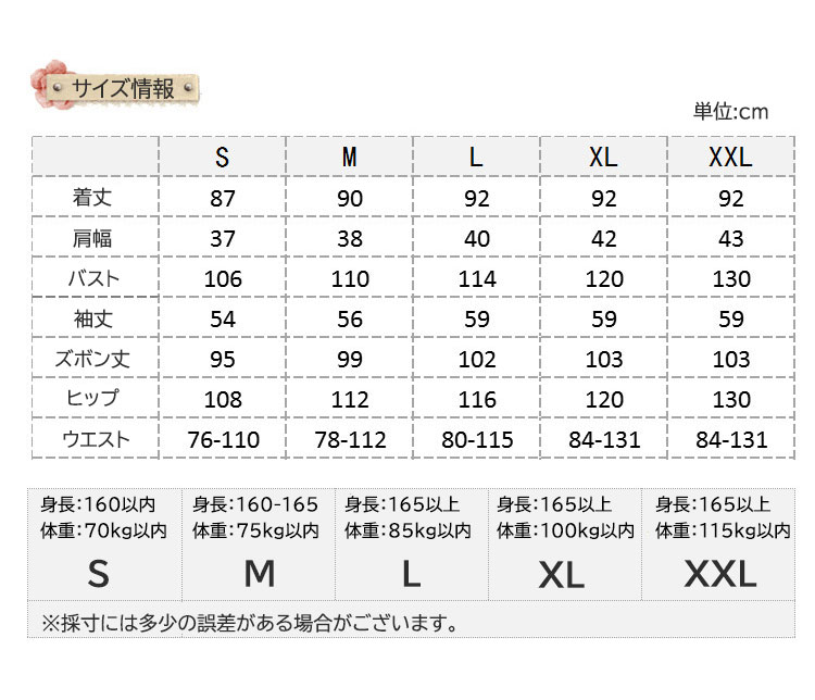 | サイズ | S/M/L/XL/XXL |