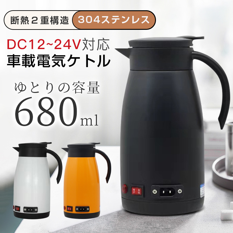 電気ポット 車載 電気ケトル 680ML 大容量 車用湯沸かし 車内 カーポット ステンレス 保温 車 トラック 車載ポット 湯ボルト 長距離 車中泊
