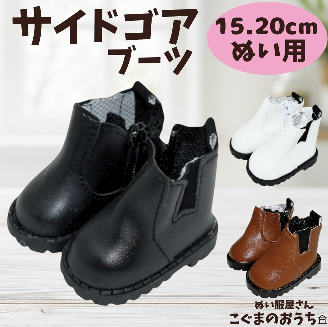 ぬい服15cmから20cm用 サイドゴアブーツ ぬいぐるみ用 靴 くつ お洋服 ぬい活 推し活 かわいい ブラック ホワイト ブラウン 3色から選べる