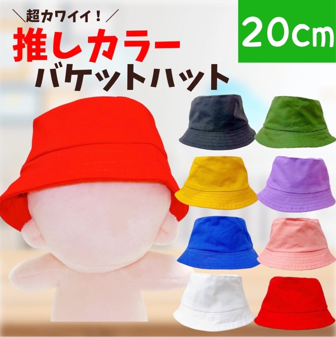 ぬい服 20cm用 8色の推しカラーバケットハット帽子 ぬいぐるみ用 お洋服 ぬい活 推し活 かわいい