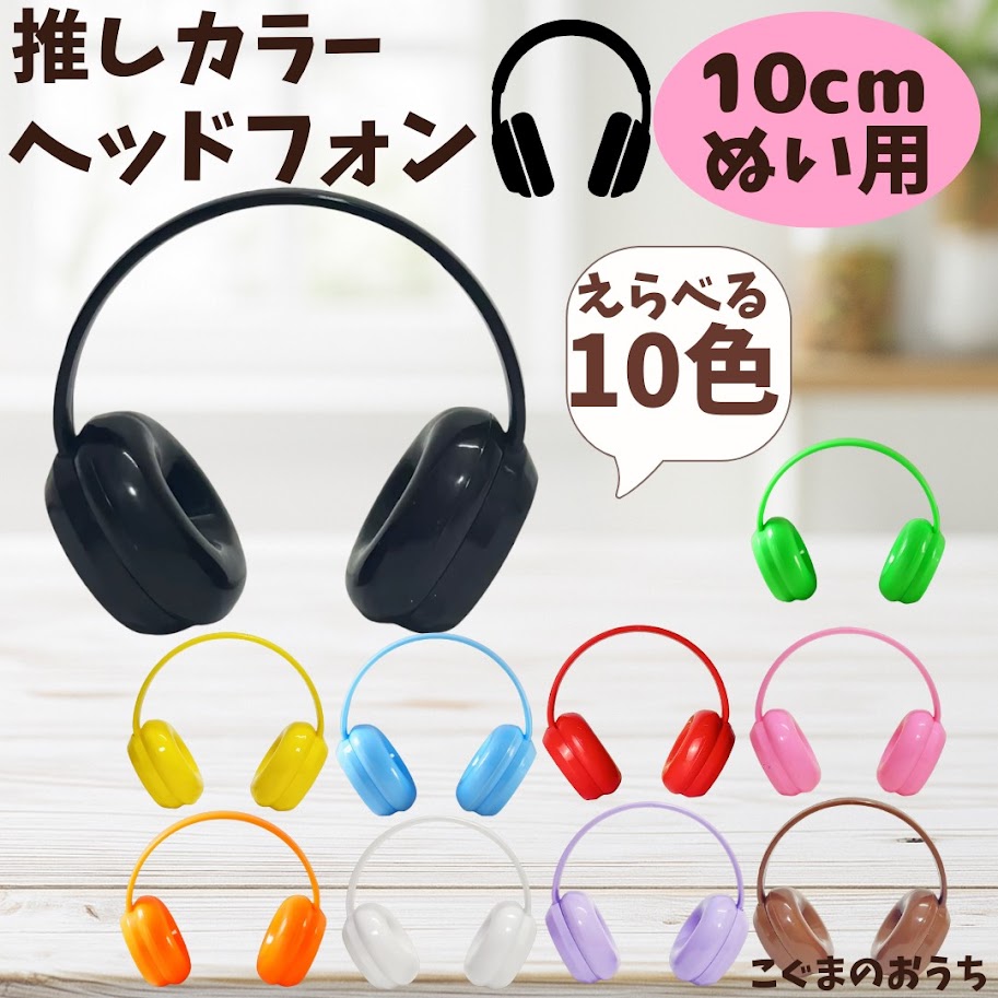 【10cm】 推しカラーヘッドフォン ぬい服 ぬいぐるみ用 ヘッドホン 推し活 黒 茶 白 赤 青 ピンク オレンジ 黄 緑 紫 アイドル ちびぐるみ いつぬい 12cm