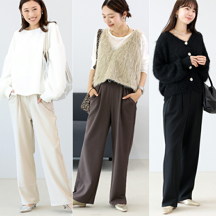 パンツ セミワイド 美脚 ウエストゴム きれいめ ワーク タック 大人 エステルスパン 秋 冬 30代 40代 レディース