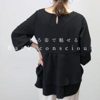 | 着丈はヒップが丁度隠れるくらい。袖丈は手首から12cm下。後ろがフリルになっていてゆったり着れます。襟は横にやや広く開いていますが、インナー見えが気になる程ではありません。着丈や袖丈は丁度いいです。 |