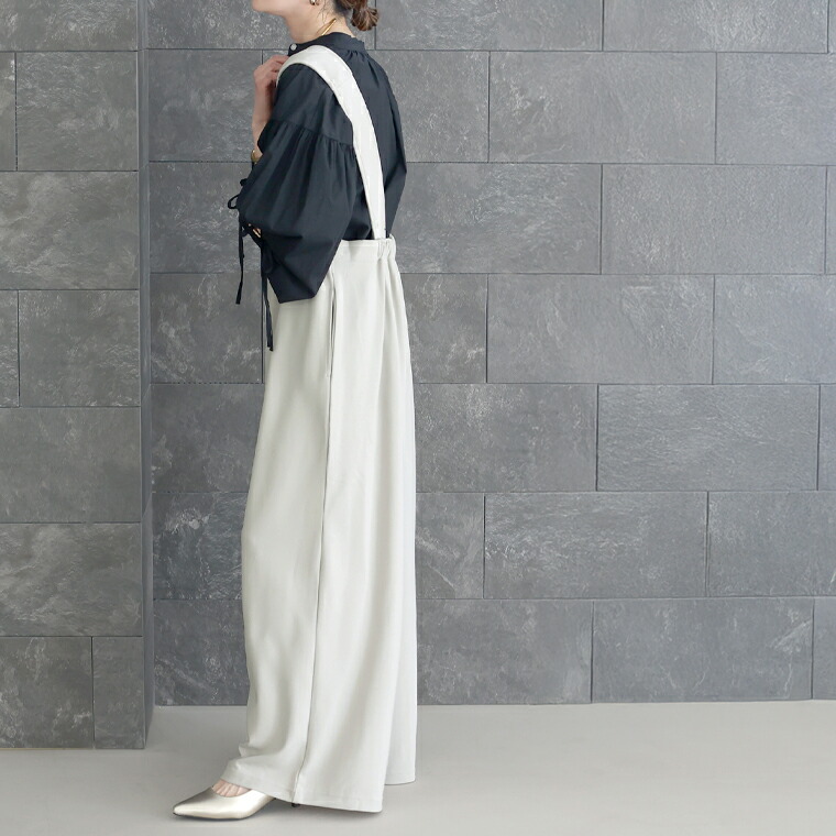 サロペット パンツ Vネック ワイド ストレート きれいめ 大人 イージーケア ダブルクロス 30代 40代 レディース