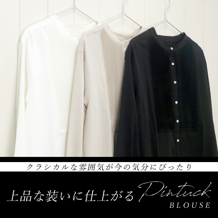 シャツ ピンタック クラシカル バンドカラー 大人 きれいめ マット ローン 秋 30代 40代 レディース