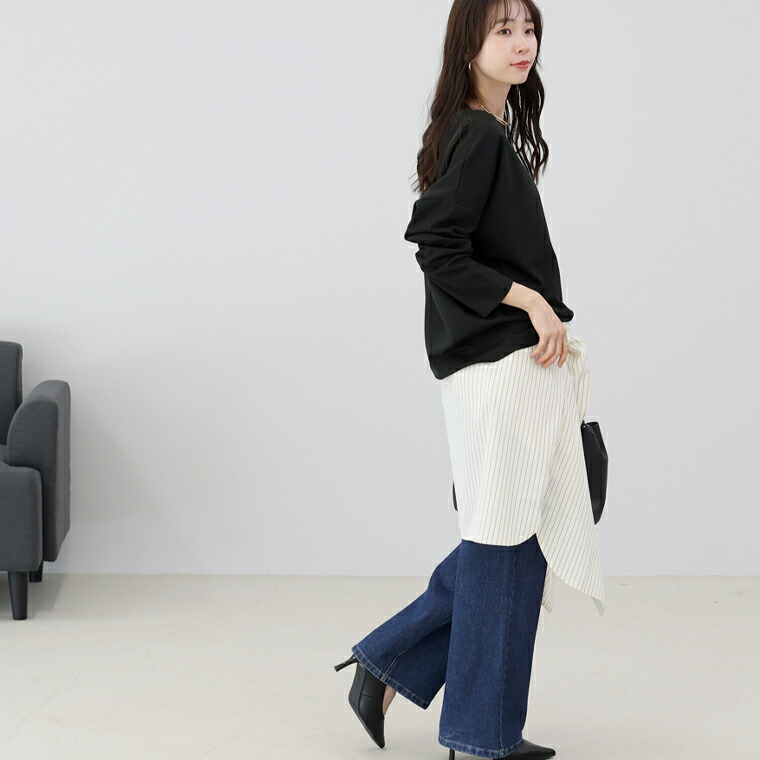 | ― STAFF VOICE ― スタッフの試着コメント ※体型が分かりやすいTシャツとスキニーを着用しています。商品ではありませんのでご注意ください。 |