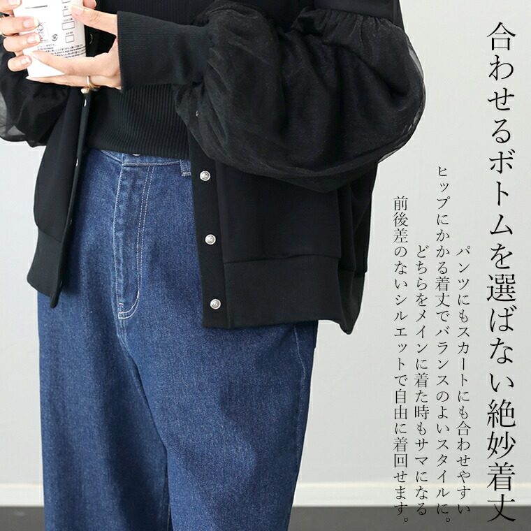 | 着丈はヒップが半分隠れるくらい。袖丈は手首から14cm下。とても柔らかい生地で肌触り良く着心地◎。ゆとりがあるので中に着込めますが着膨れせず、長いシーズン使えそうです。 |