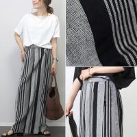 | 着丈はかかとから2cm下。長めの着丈でペタンコ靴だとズってしまいます。ウエストはゴムではないですがボタンで調節できるので楽に穿けます。ヒップや太もものラインを拾わず、ストンとしたシルエットでとてもキレイです。 |