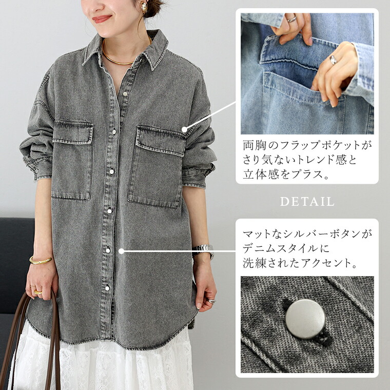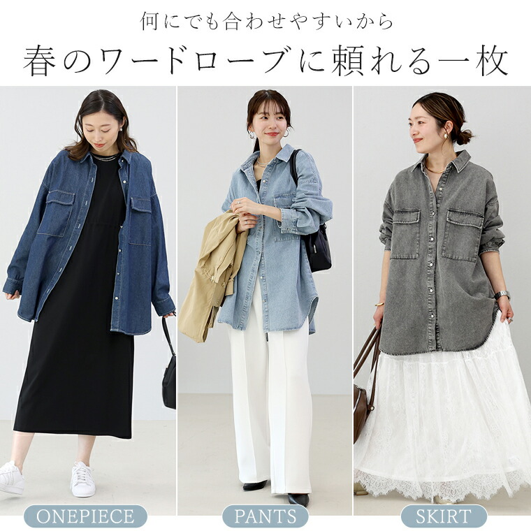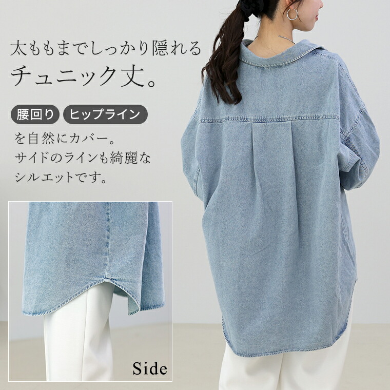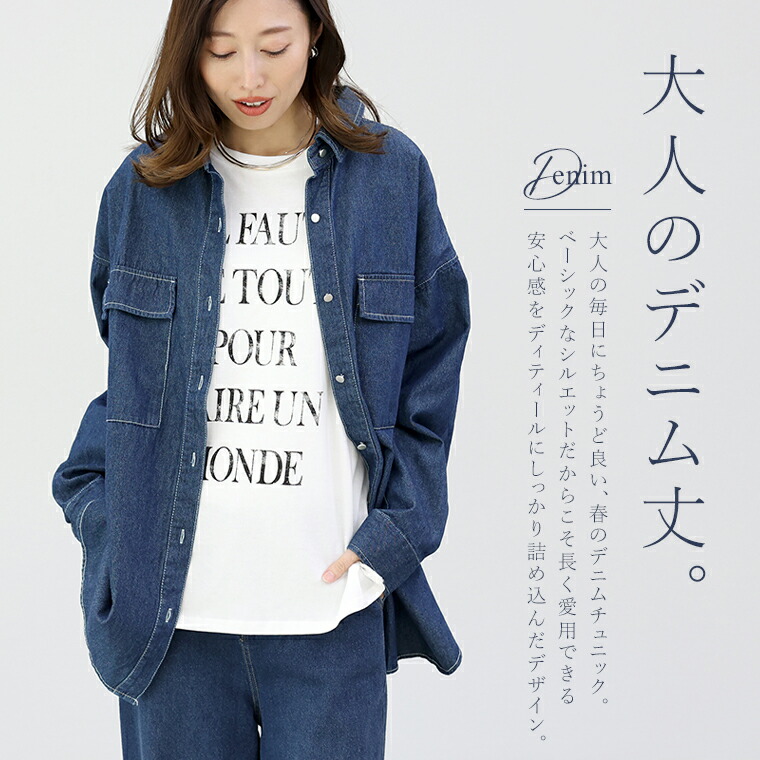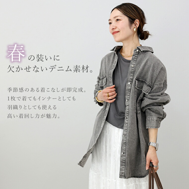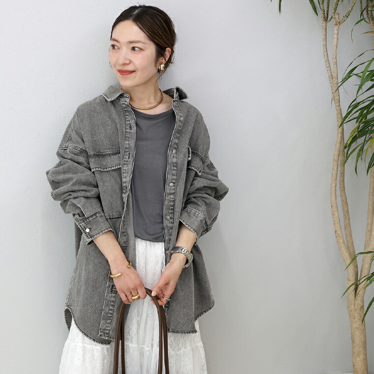 | 着丈はヒップから10cm下。袖丈は手首から10cm下。身幅にゆとりがあり中には厚手のものも重ねられそうです。ヒップをしっかり隠してくれる着丈で体型カバー◎。インナーを変えれば長い季節使えそうです。 |