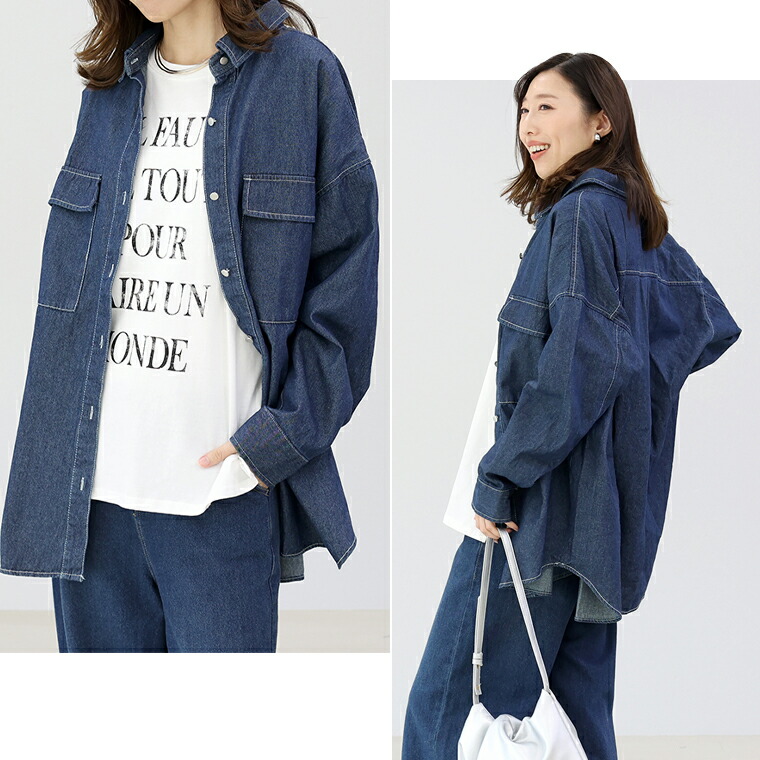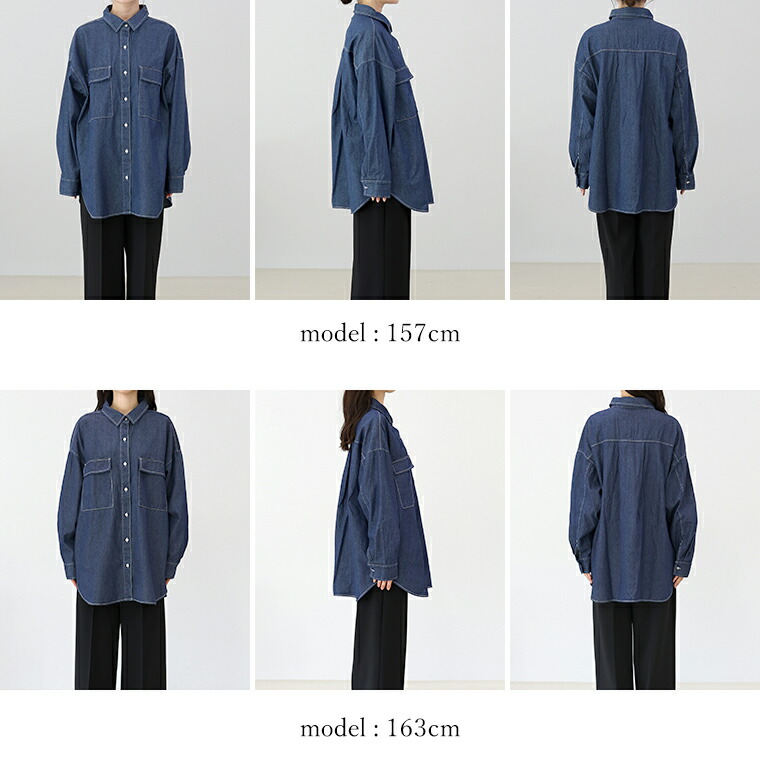 | 着丈はヒップから11cm下。袖丈は手首から15cm下。ゆったりしたシルエットでお腹やヒップを体系カバー◎。少し厚手なので春にはシャツ以外にも羽織としても使えていいですね。 |