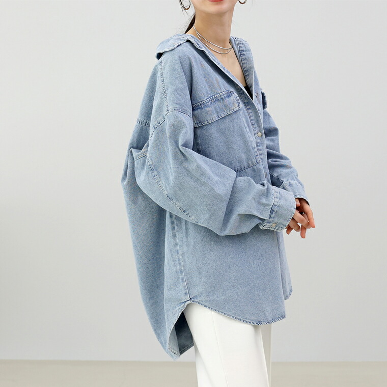 | 着丈はヒップから11cm下。袖丈は手首から16cm下。デニムの生地ですが生地が柔らかく着やすいです。ゆったりしているので中に薄手のニットなら着られそうです。ヒップをすっぽり隠してくれ◎。 |