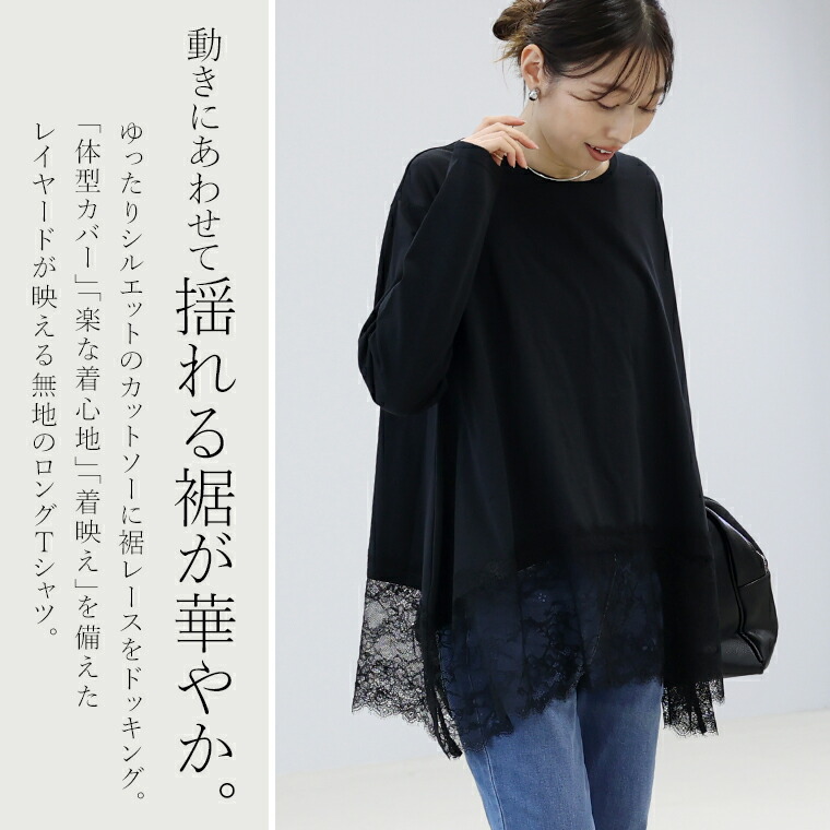 トップス カットソー ロンT ロングTシャツ Tシャツ 綿 コットン ボートネック 裾レース レース イレギュラーヘム 着丈長め チュニックカットソー 40代 30代 体型カバー きれいめ キレイめ 綺麗め 上品 おしゃれ お洒落 大人め ブラック 黒 くろ オフホワイト 白 しろ カラバリ豊富 大きめ 大きい ワンマイルウエア ワンマイルウェア レディースファッション 無地 ラクチン らくちん 楽ちん 動きやすい プラスサイズ 着痩せ 華奢見え 脚長 脚長効果 ゆったりサイズ ゆる すっきり カバー きちんと シンプル カジュアル ナチュラル ベーシック オフィス オフィスカジュアル テレワーク リモートワーク リモート 会議 食事会 ランチ 女友達 参観日 二次会 飲み会 上品 知的 女性らしい 女らしい 着映え オンライン飲み会 着回し 大人 大人カジュアル オトナ 女性 綺麗 きれい キレイ キレイめ 高見え 上質 上品 大きめ 大きい 大きいサイズ 体型カバー 華奢見え 着痩せ 細見え 着回し 大人 大人カジュアル オトナ 女性 綺麗 女性 女性服 アースカラー フリーサイズ レディースファッション ラクチン 楽 らくちん 楽ちん ノンストレス 動きやすい プラスサイズ 着回し プラスサイズ ゆったり ゆったりサイズ ゆる すっきり シンプル 無地 きれい キレイ きれいめ キレイめ 高見え 上質 高級感 母の日 プレゼント ギフト 贈り物 S M L LL 2L XL 20代 50代 おしゃれ パ―ト バイト 仕事 仕事用 ユニフォーム 春夏 春 夏 秋冬 秋 冬 お洒落 オシャレ かわいい 可愛い カワイイ かっこいい カッコいい FUNNY COMPANY ファニーカンパニー ふぁにーかんぱにー ファニカン