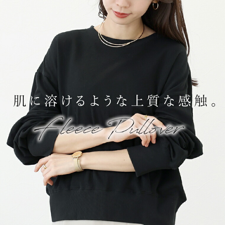 | 着丈はヒップが3分の2隠れるくらい。袖丈は手首から22cm下。全体的にゆったりしたサイズ感でユルっと着れます。裾のリブは軽くフィットし窮屈感はありません。袖口のリブは腕まくりをすると軽いフィットでしっかりとまります。 |