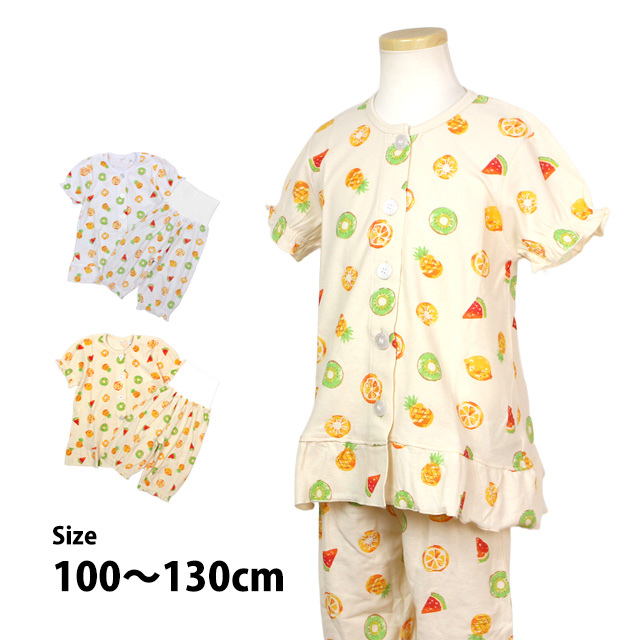 | 商品説明 | サイズ展開:100cm 110cm 120cm 130cm シーズン:夏 お肌にやさしく肌触りが良い綿素材 寝返りをうってもお腹は見えない腹まき付 腹巻部分はとてもやわらく伸縮性抜群 通気性の良い梨地天竺生地 かわいいキウイやパインなどの果物柄プリントです ※ モニター発色の具合により実物とお色味が異なって見える場合がございます。 |