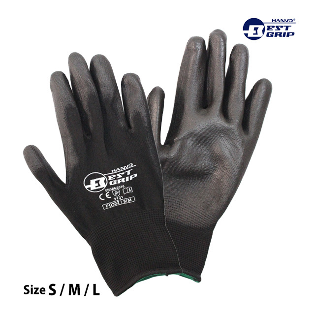 滑り止め 手袋 作業 背抜き 手袋 ポリウレタン S M L pq302 ソフトウレタン アクセス HANVO BEST GRIP