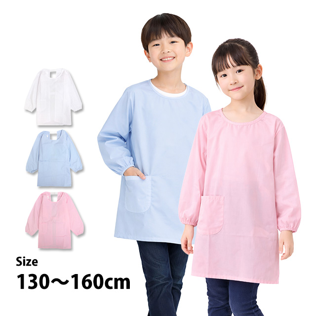 給食 エプロン かっぽう着 白衣 長袖 子供用 キッズ 男の子 女の子 無地 学校 子供エプロン 小学生 130cm 140cm 150cm 160cm