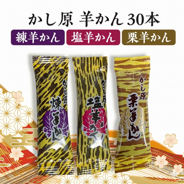 かし原 ようかん 計30本 選べる種類 かしはら 一口 羊羹 3種 本練 塩 栗 詰め合わせ アソート