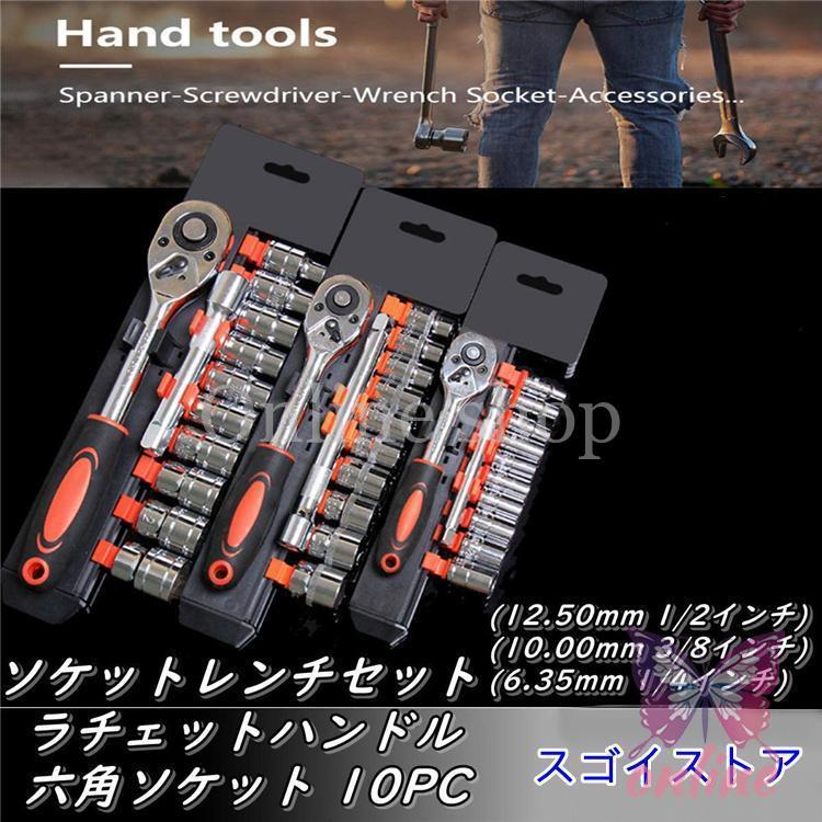 ソケットレンチセット ラチェットハンドル 六角ソケット 10PC 車両整備 修理 自動車 締め付け工具 バイク 多規格選択可能 12点セット