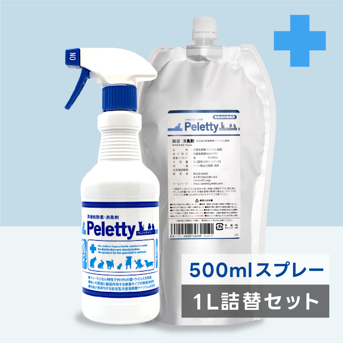 ペレッティー お徳用 消臭スプレー ペット用 犬 猫 無香料 ペットが舐めても安心 1L詰替え用 + 500ml Peletty 除菌 消臭 プレミアム