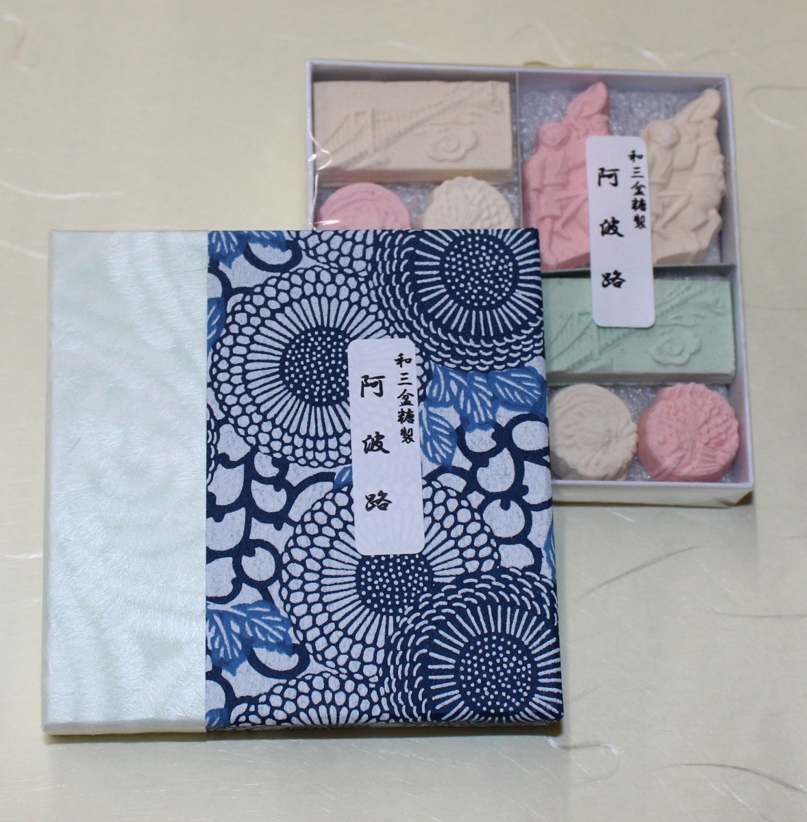 当店では徳島県で製造されている阿波和三盆糖を使用した干菓子を販売しております。