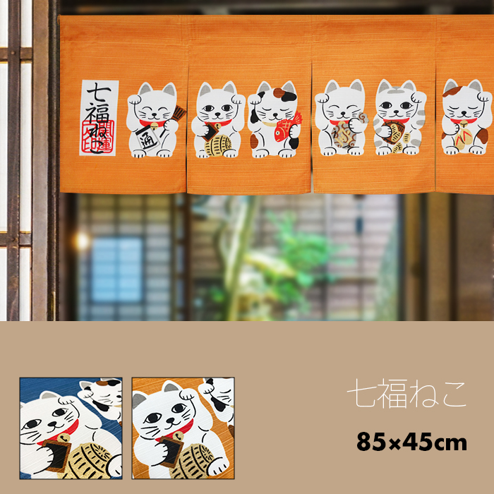 のれん 暖簾 おしゃれ カーテン 30cm 日本製 和風 和柄 間仕切り 目隠し 招福 幸運 招き猫 にゃんこ 七福ねこ 巾85cm