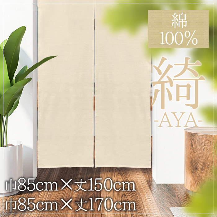 のれん 暖簾 おしゃれ カーテン 150cm 無地 綿100% 間仕切り 目隠し シンプル ナチュラル 選べるサイズ 巾85cm 巾85cm 綺 AYA