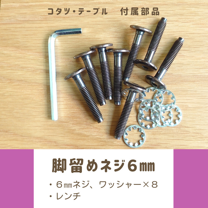 こたつテーブル用の脚留めネジ(1台分)。当店で取り扱っているこたつテーブルに対応しています。