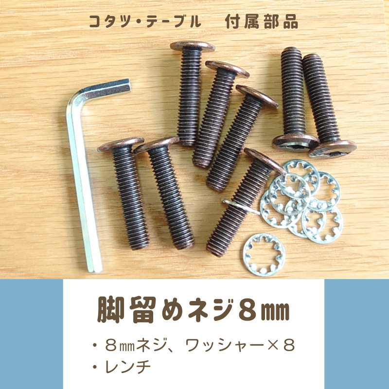 こたつテーブル用の脚留めネジ(1台分)。当店で取り扱っているこたつテーブルに対応しています。