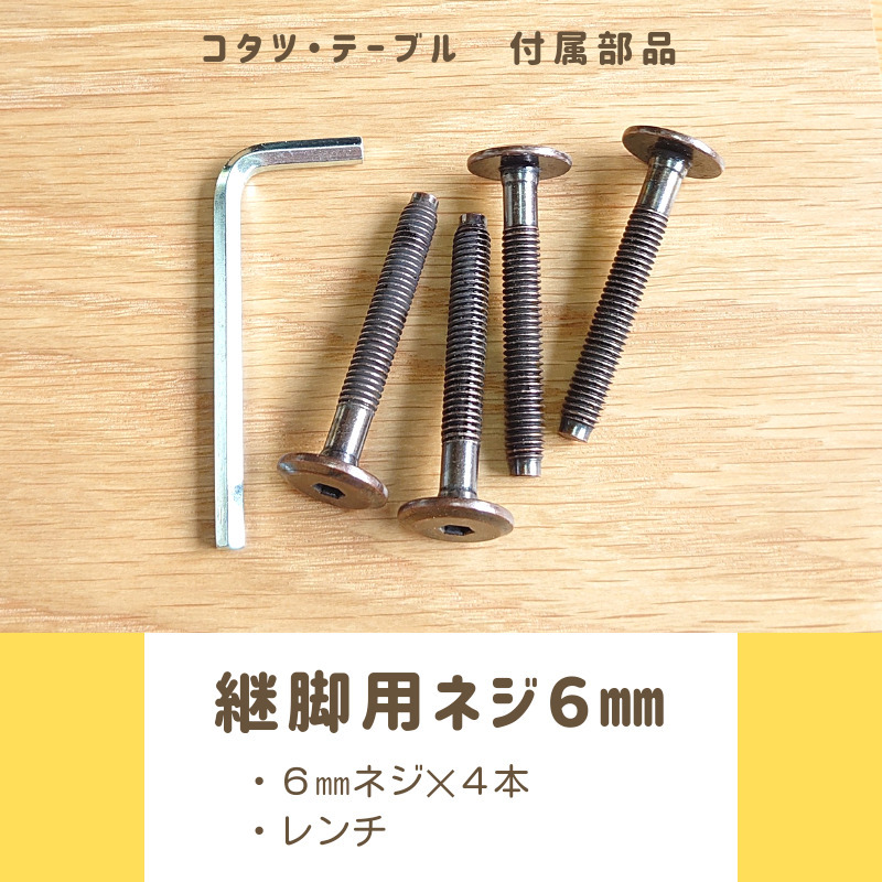 継脚用のネジ(1台分)。当店で取り扱っている継脚タイプのこたつに対応しています。