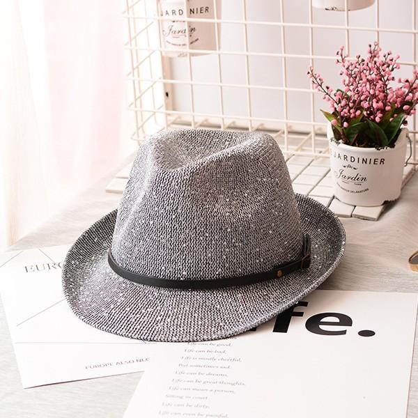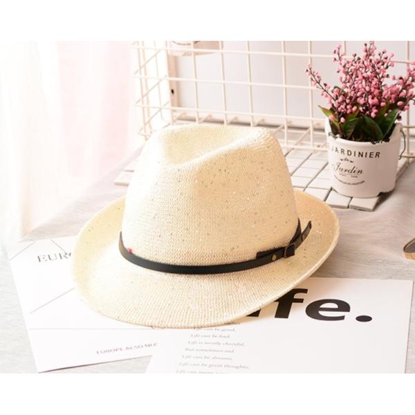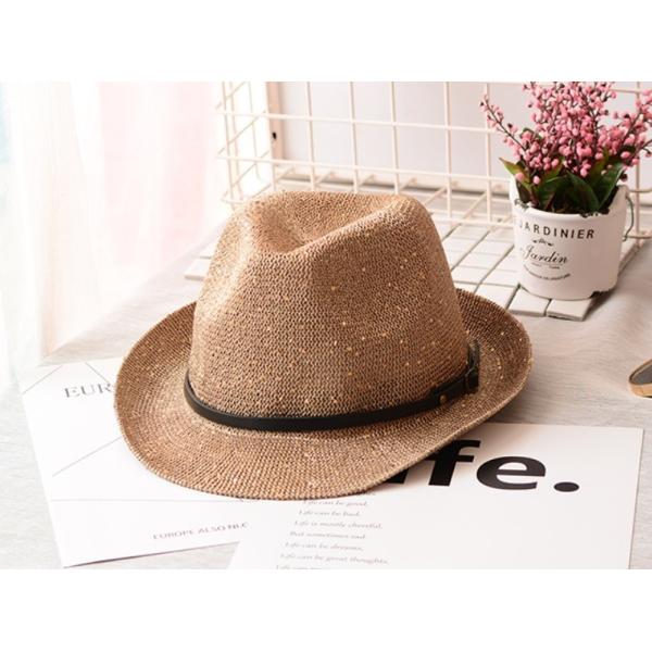 帽子 ハット 中折れ帽 中折れ キラキラ 麦わら ストローハット ベルト レディース