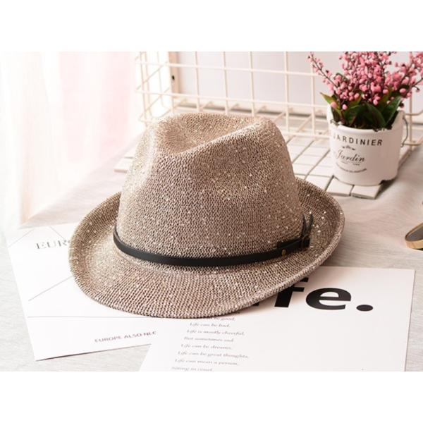 帽子 ハット 中折れ帽 中折れ レディース キラキラ 麦わら ストローハット ベルト ベージュ グレー ブラウン ブロンズ茶 送料無料