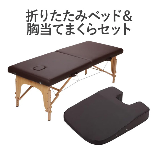 | 0015-2-set-1:折りたたみマッサージベッド 胸当てマクラ セット ブラウン 内容 (1)20645:軽量 折りたたみ マッサージベッド (木製)(有孔) チョコレート 長さ185×幅70×高さ51〜83cm (2)0015-2:胸当てマクラ 高さ3〜8cm ブラウン |