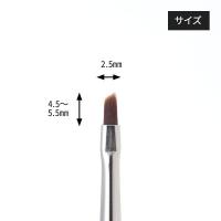 | ■サイズ ・毛幅2.5×厚み1×軸径8.5×穂先4.5〜5.5mm ・全長:153mm ■原材料 ・毛:PBT合成繊維 ・金具:ニッケル ・軸:天然木 |