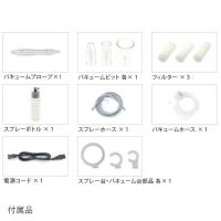 | ■サイズ:幅8.5cm×奥行21.5cm×高さ15.5cm ■重量:約1Kg ■定格電圧:AC100V 50/60Hz ■消費電力:最大50W ■付属品:バキュームプローブ、バキュームピット3種、フィルター、スプレーボトル、スプレーホース、バキュームホース、プローブ台部品、電源アダプタ |