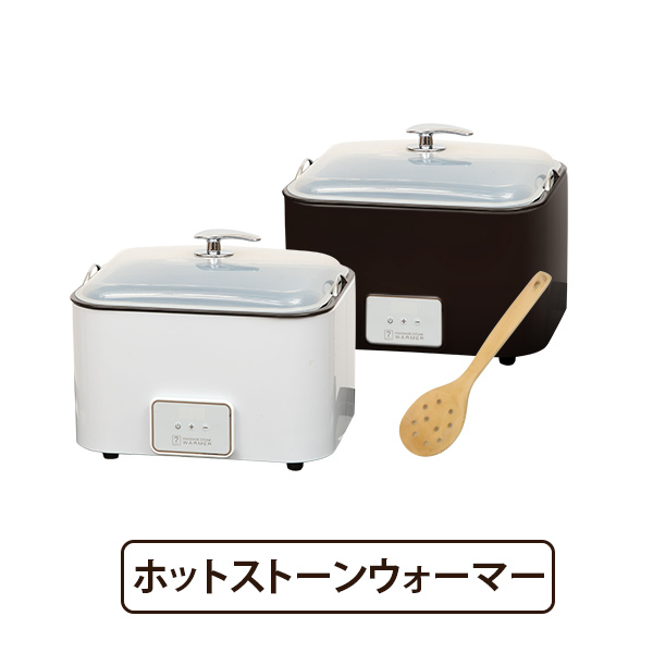 | ワゴンにも乗せやすいコンパクトデザインのストーンウォーマーです。デジタル式の温度調節機能を搭載。内蔵の鍋部分は取っ手付きで、取り外しや持ち運びも簡単です。カラーは高級感のあるダークブラウンと、清潔感あふれるホワイトの2色をご用意。木製専用しゃくし付き。PSE認証取得済み。加熱中には赤・保温中には緑のランプが点灯します。 |