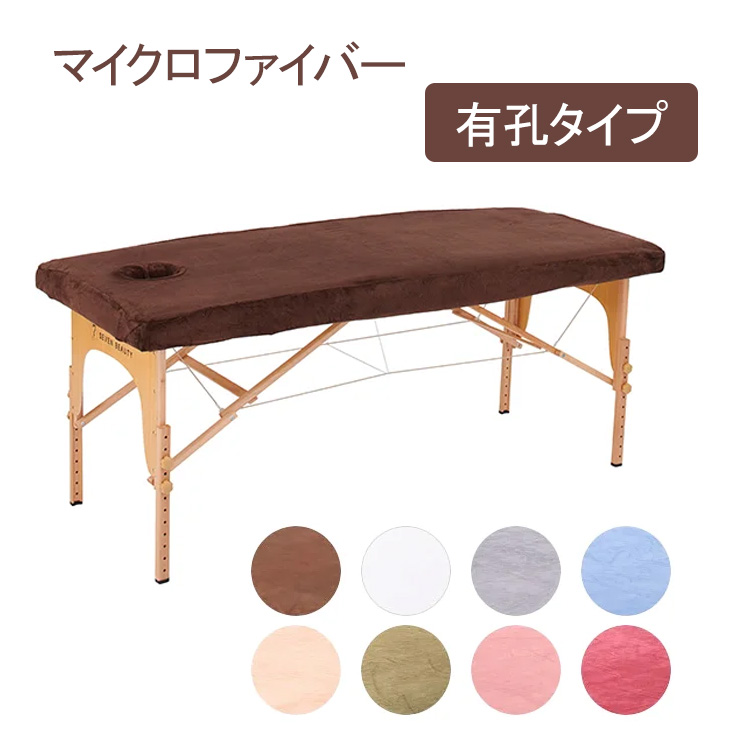 | 吸収性と速乾性に優れたマイクロファイバー素材で作ったマッサージベッド用カバーです。起毛素材のため肌触りもよく、寝心地も抜群です。生地に伸縮性があり、ボックスシーツタイプのゴム留め式なので装着も簡単。施術中のズレを抑えます。フェイスホール用の穴が開いた有孔タイプです。 |