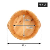 | 男性でも使用しやすい直径約30cm。天然のヒノキ材を使用する事で温かみがあり癒し効果もある香りも楽しめます。同じ材質でつくられた蓋は、温度を冷めにくくするだけではなく、施術道具置きとしても使用する事が可能です。 |