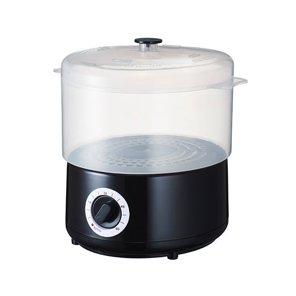 | 1.本体の水タンクに水を入れます。 2.スチームバスケットに加熱したいものを入れます。 3.スチームバスケットを本体にセットして、ふたを閉めます。 4.電源プラグをコンセントに差し込み、タイマーを設定して加熱します。 5.加熱を終了します。 6.加熱したものをスチームバスケットから取り出します。(付属の木製トングをご使用ください) |