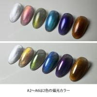 | A1:シルバーの単色マグネット A2:ピンク×オレンジの配色 A3:オレンジ×グリーンの配色 A4:水色×グリーンの配色 A5:ブルー×パープルの配色 A6:オレンジ×イエローの配色 ■硬化時間目安 ・36W LEDライト参考:約30秒 ・6W LEDライト参考:約60秒 ・UVライト:約60〜120秒 |