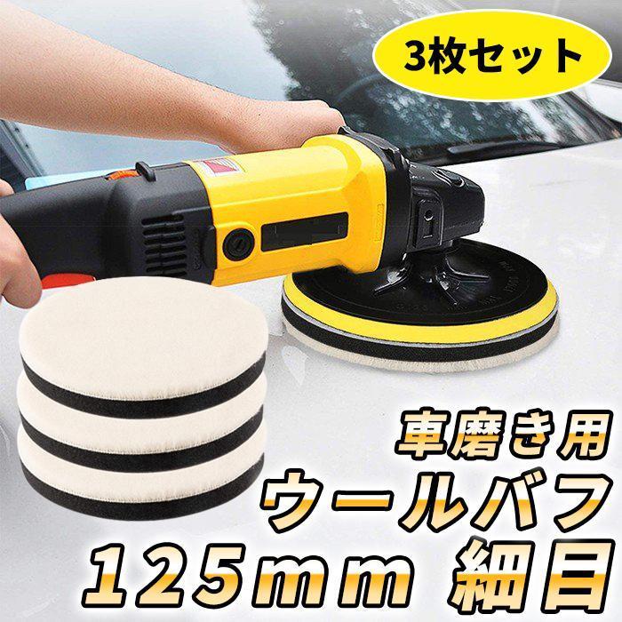 3枚セット 車磨き用 ウールバフ 125mm 細目 洗車用 車磨きポリッシャー用 研磨艶出し