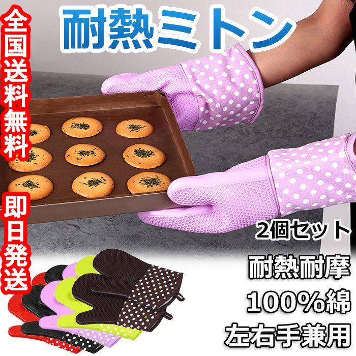 2枚セット シリコン 100%綿 オーブンミット 鍋つかみ 耐熱防水 滑り止め 左右手兼用 グローブ 北欧 おしゃれ 電子レンジ用