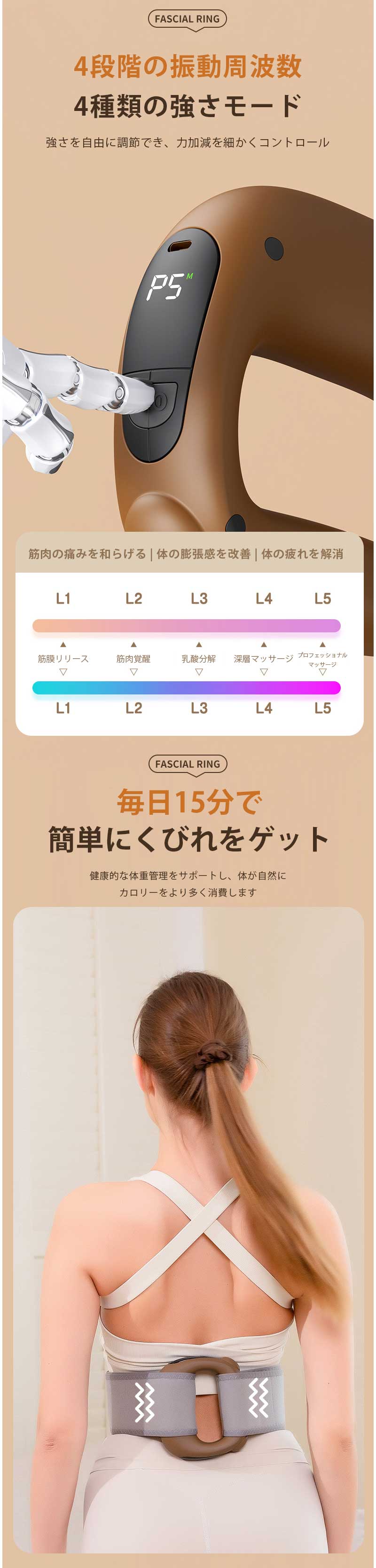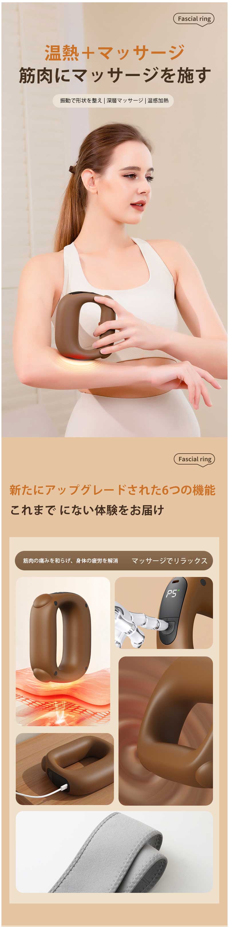 新型 筋膜リング 筋膜リリースガン 筋膜リリーズリング マッサージリング マッサージガン ミニ マッサージ機 ハンディガン コンパクト 軽量 小型 静音 振動