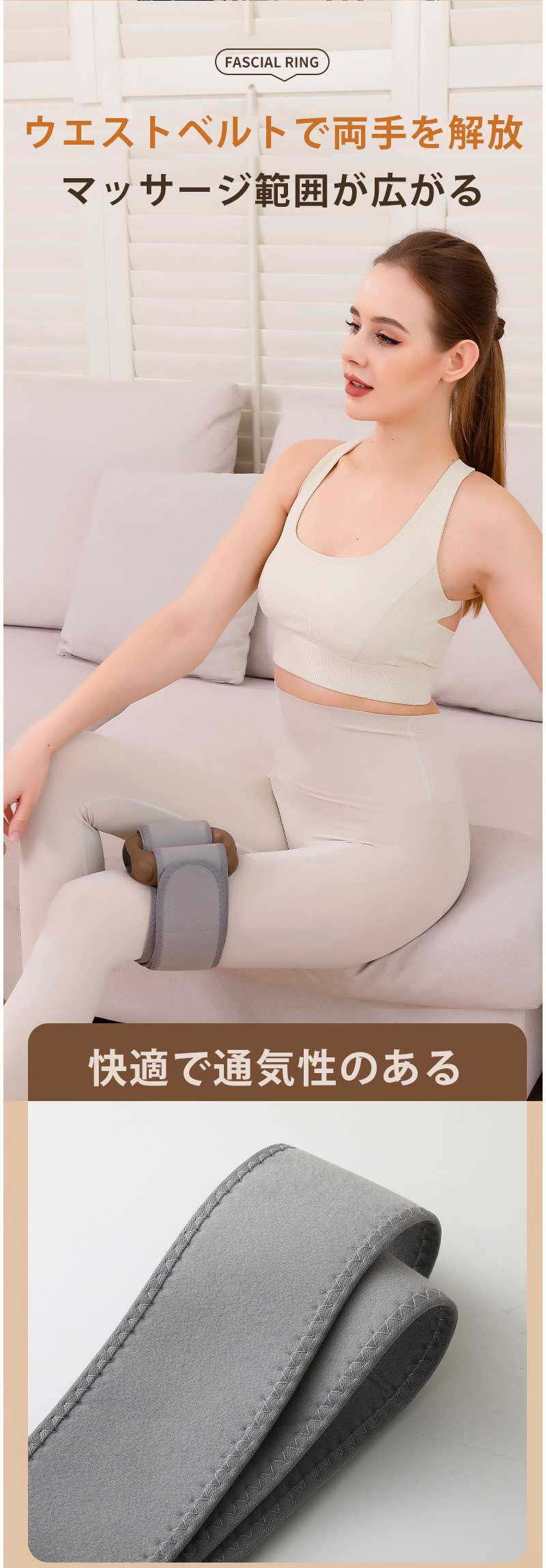 筋膜リリース ガンは付属のベルトを使用することで、両手を解放しながらリラクゼーションを楽しむことができます。家事をしながら、仕事をしながら、テレビを見ながらなど、忙しい日常の中でも簡単に筋膜ケアが可能です。