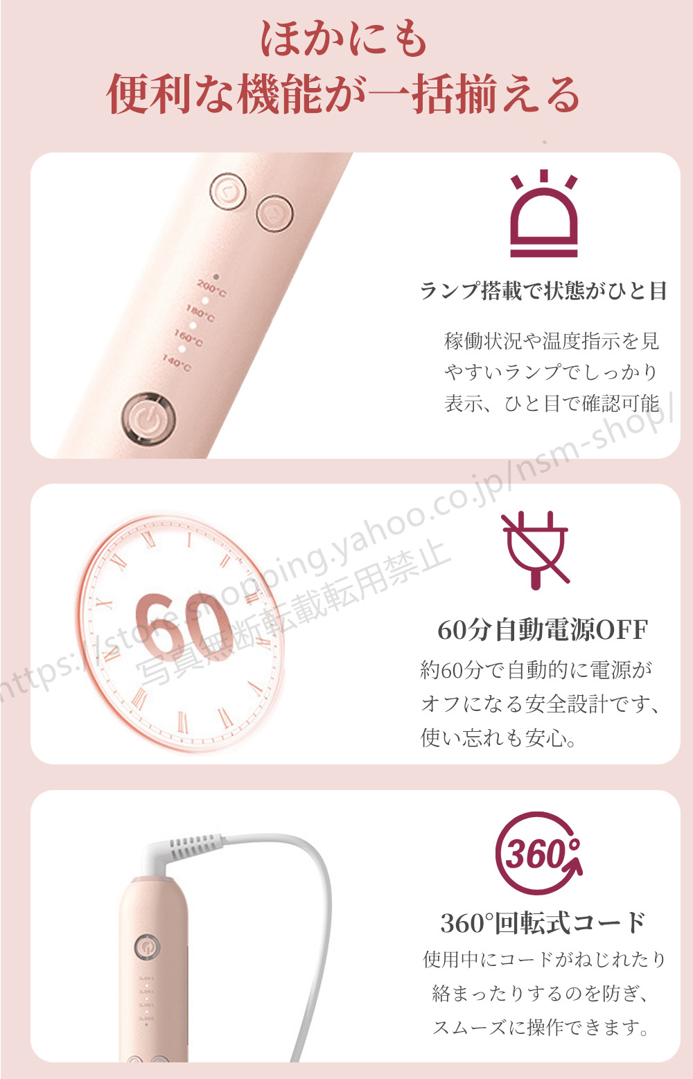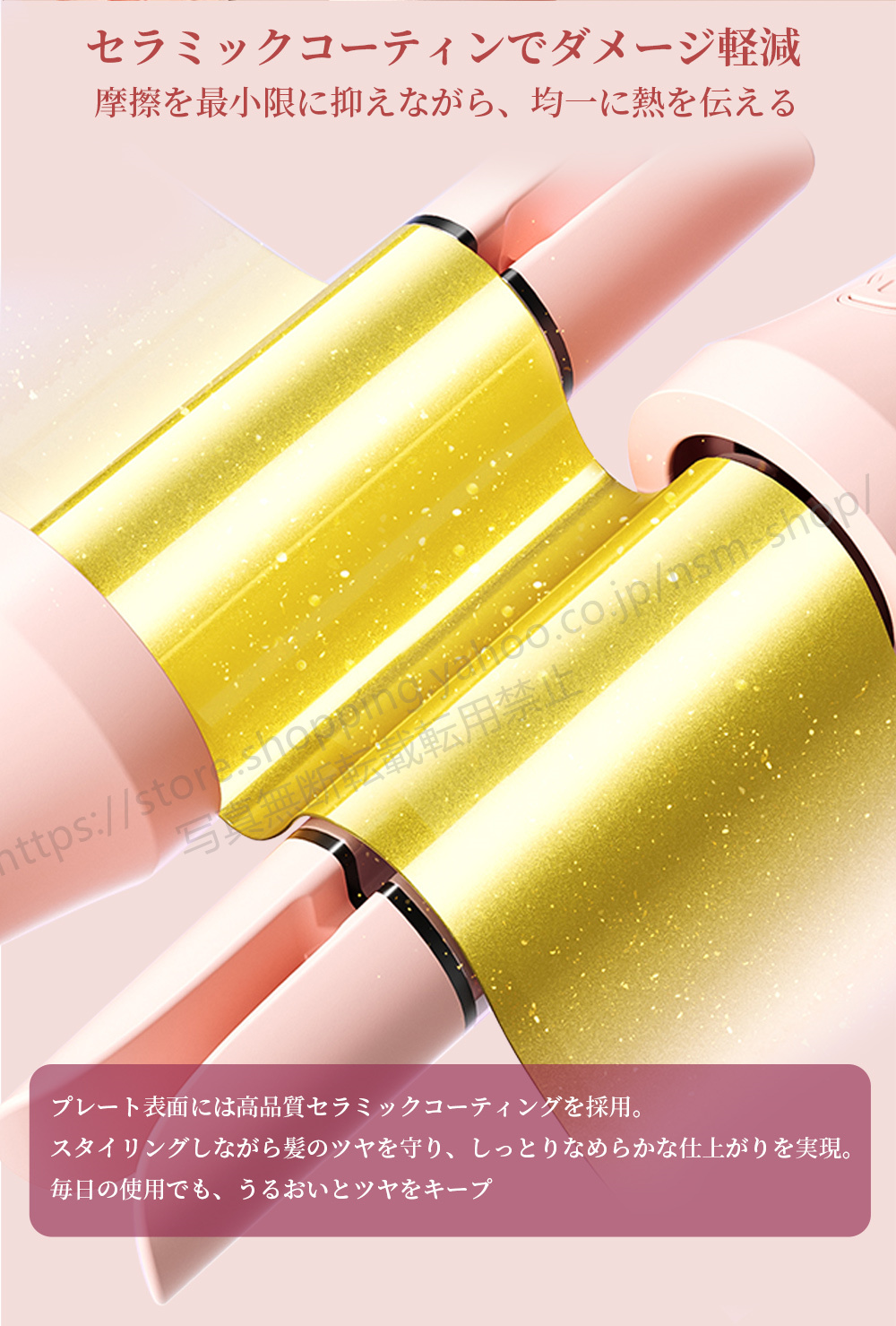 髪を包み込むセラミック加工でダメージを防止。