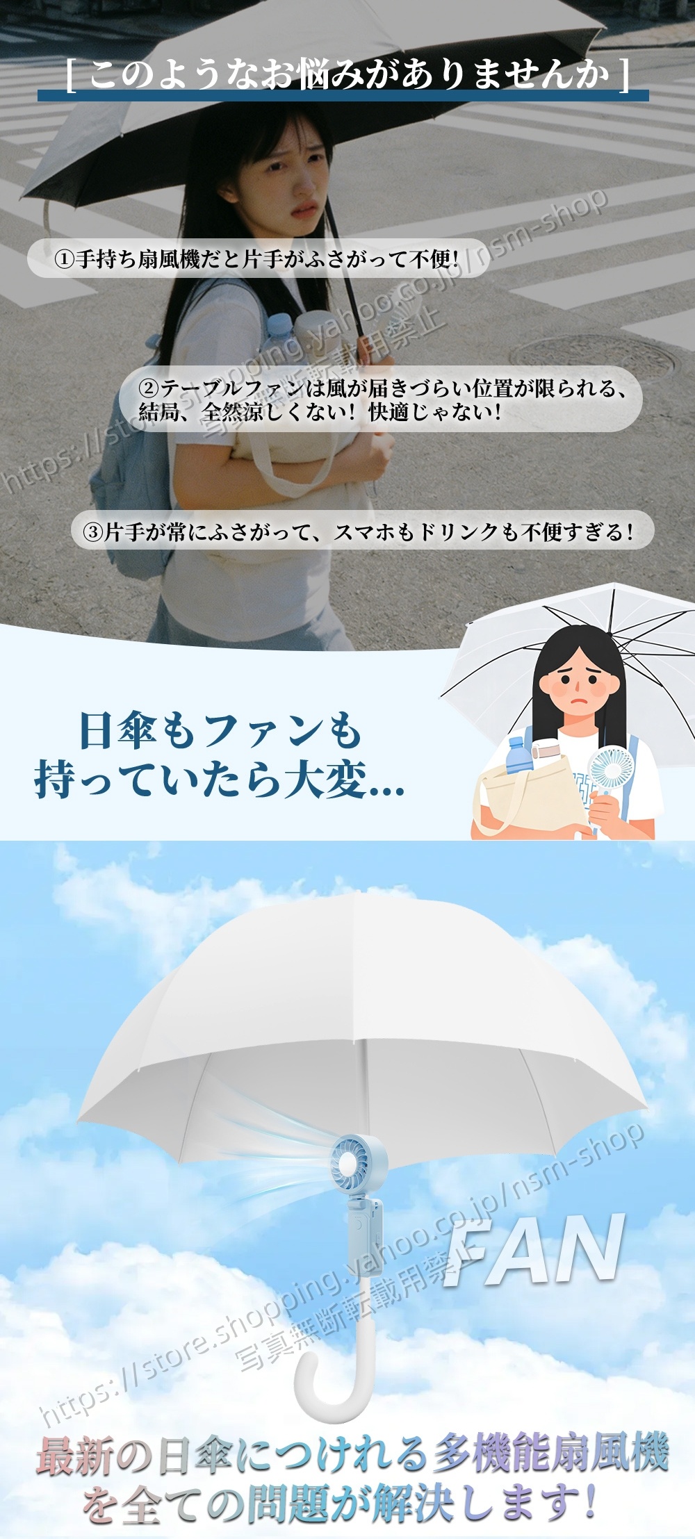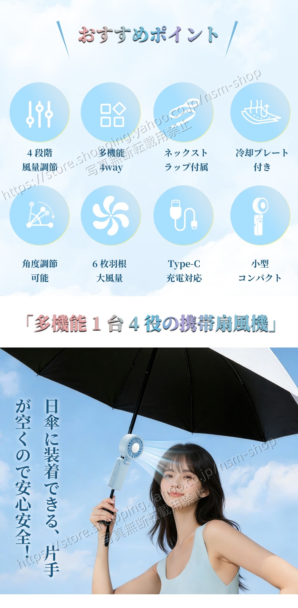 手持ち・日傘装着・卓上・首掛け