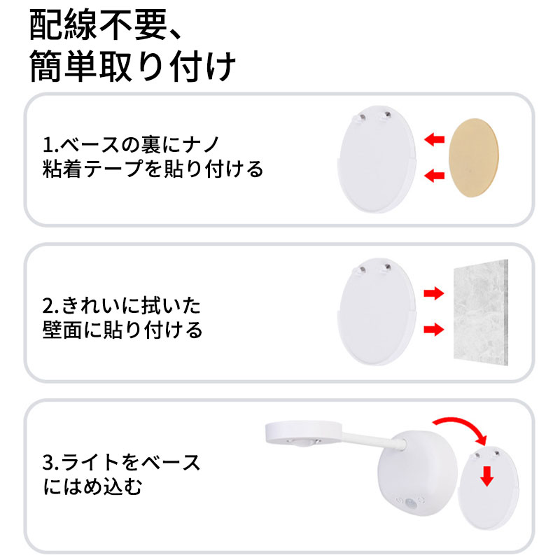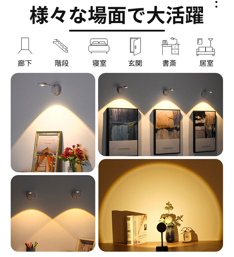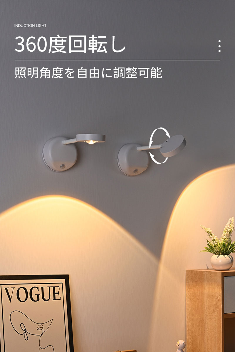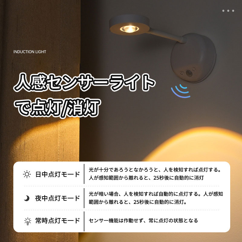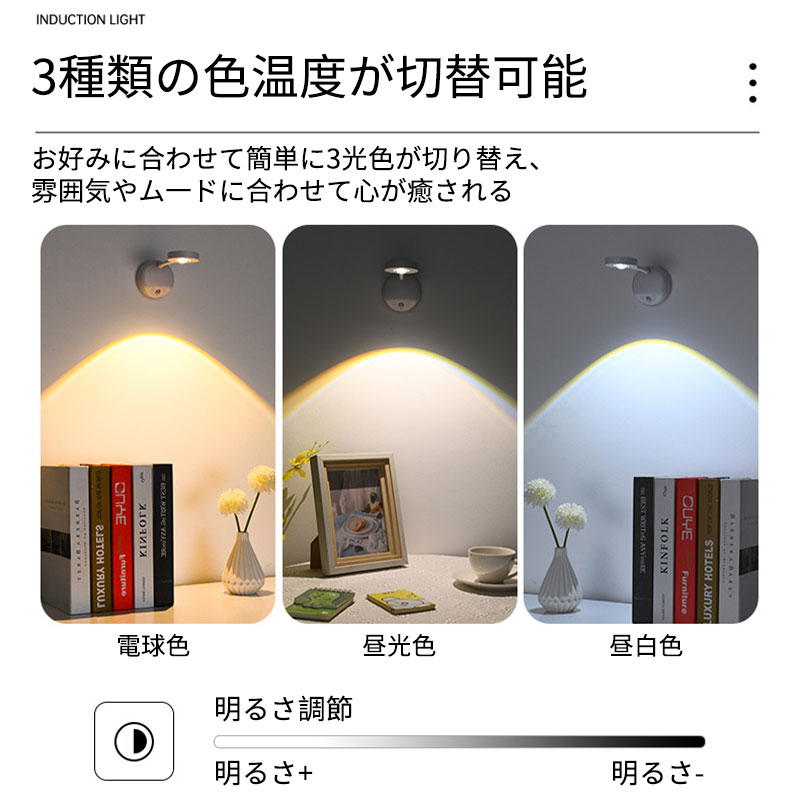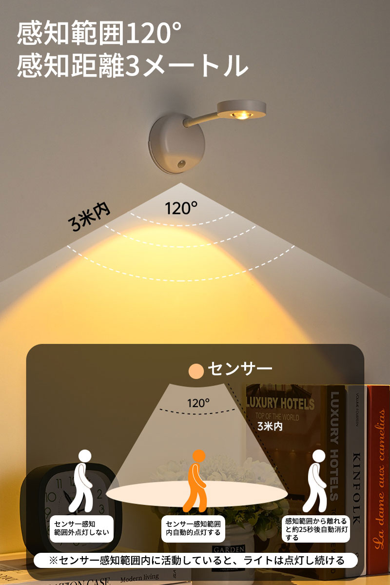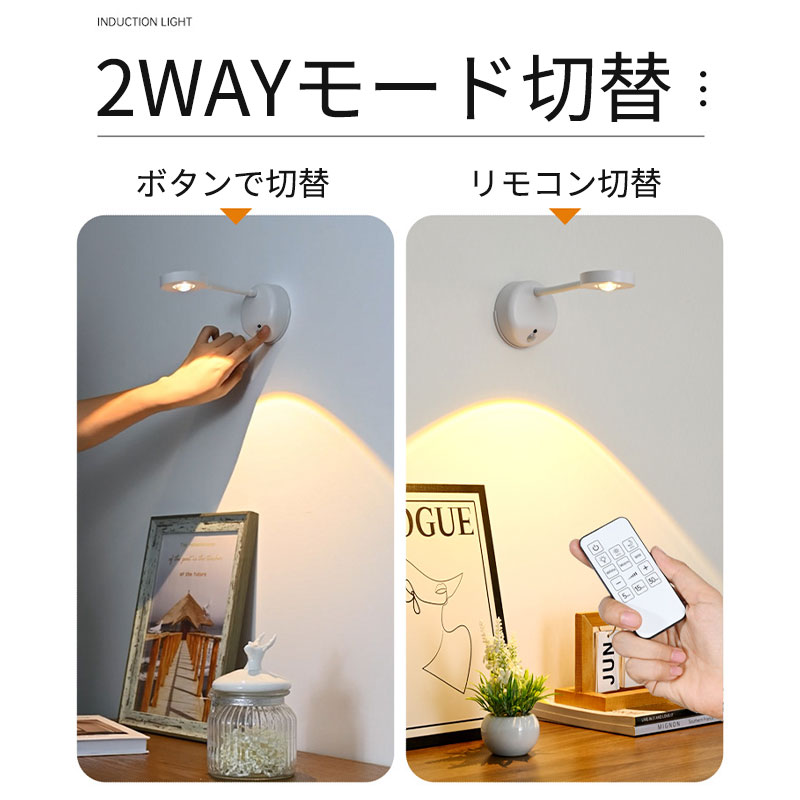 大容量 2200mAh ブラケットライト 壁掛け灯 センサーライト フットライト リモコン付き 人感センサー 調光調色 角度調節 足元ライト 自動点灯/消灯 LED