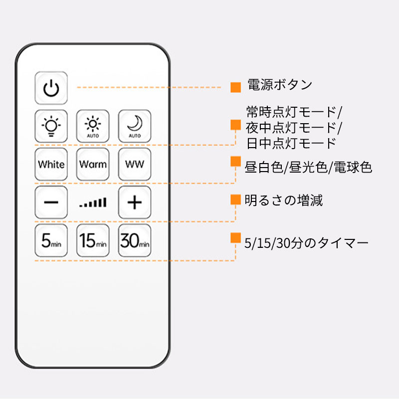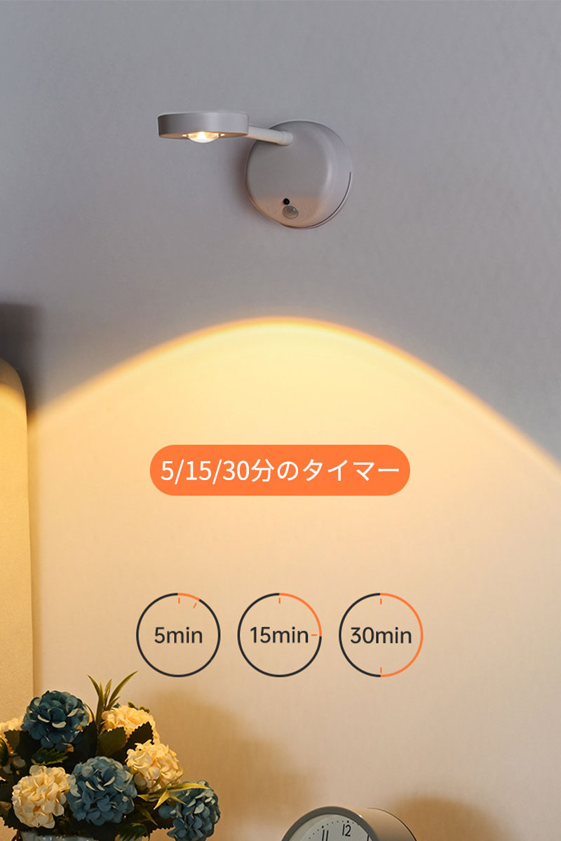 リモコンが搭載されており、電源オン/オフ、3つモード、タイマーを設定、三色切り替えをコントロールできます。そして、常時点灯モードの場合、タイマー機能付きなので寝る前に暖かい色の光で5/15/30分のタイマーを設定し、安心してぐっすり眠るまでに自動的に消灯し、消し忘れの心配もなく、大人と子供の睡眠に役立ちます。そして電気代も節約できます。