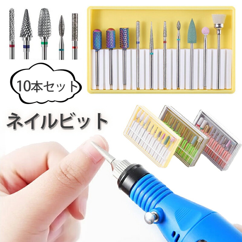 在庫一掃!ネイルビット 10本セット タングステンカーバイト製 ネイルドリル ネイルマシーン 甘皮処理 ネイルツール マシン用 ビットセット カーバイトビット
