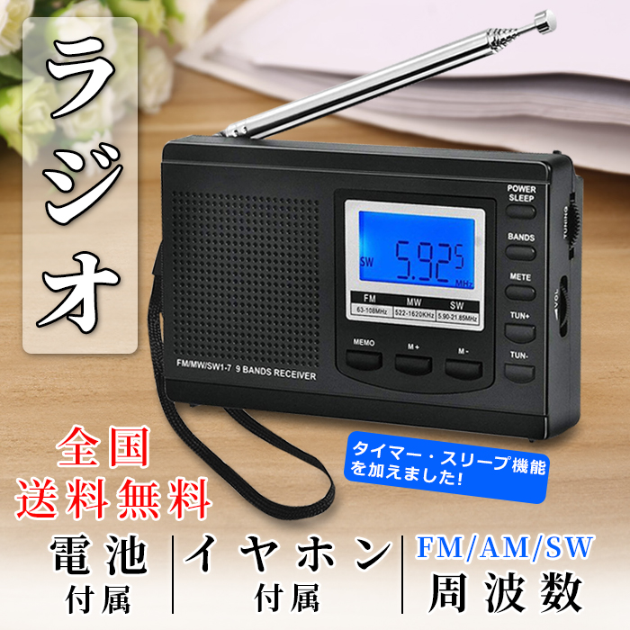 スリープオートオフ機能付き ラジオ 防災 地震 小型ポータブル FMAMSW ワイドFM対応 高感度受信クロックラジオ イヤホン付き タイマ