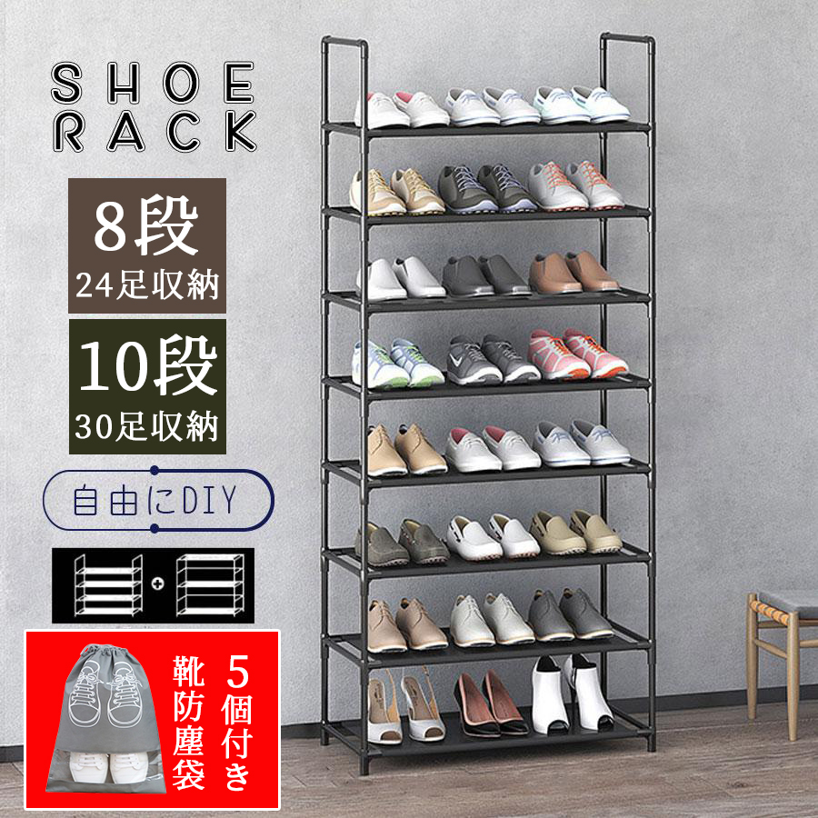 シューズラック スリム 下駄箱 靴ラック シューズ 5段階 8段階 10段階 幅60cm 玄関収納 収納棚 オープン収納 靴入れ 靴収納 大容量 玄関すっきり 分割可